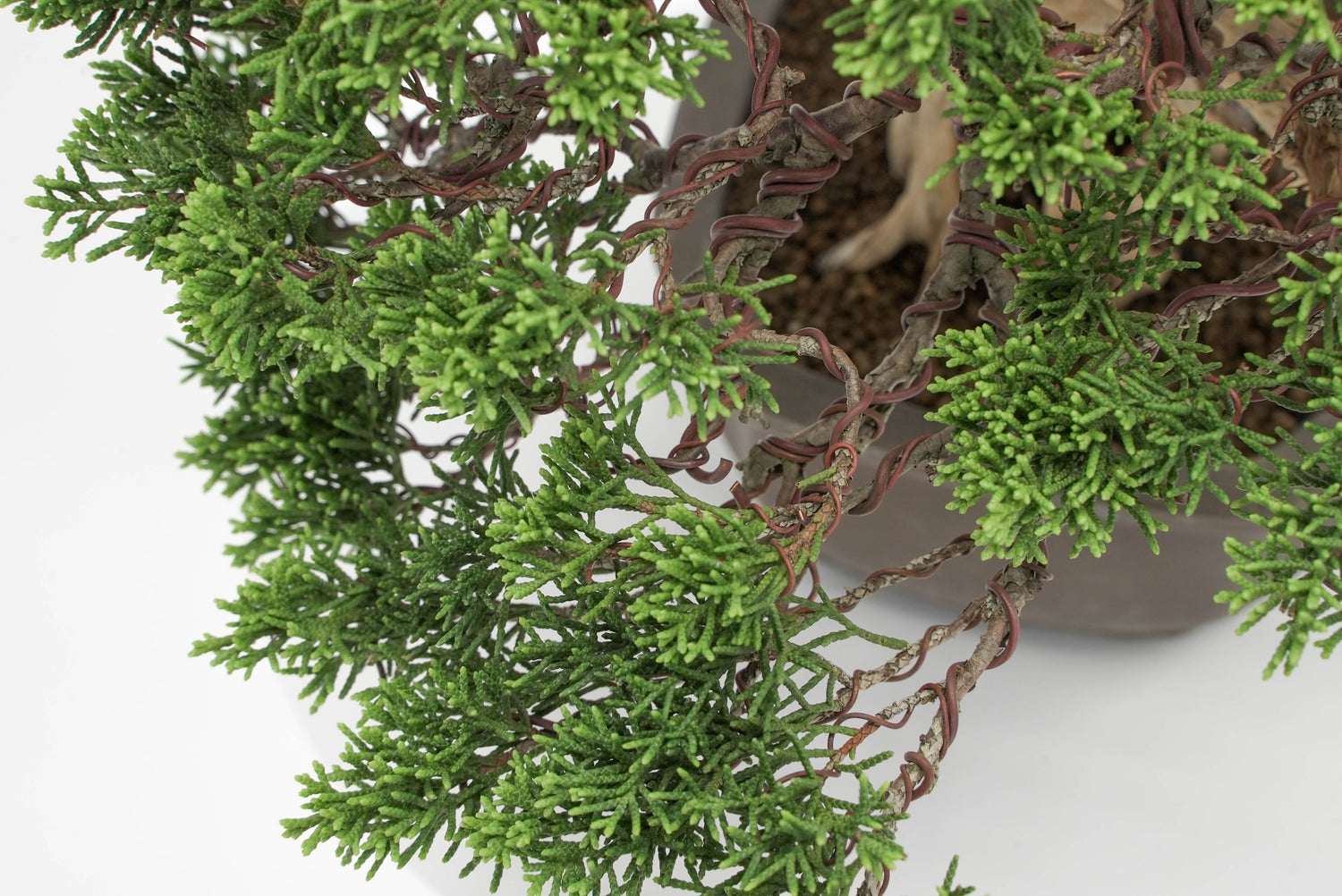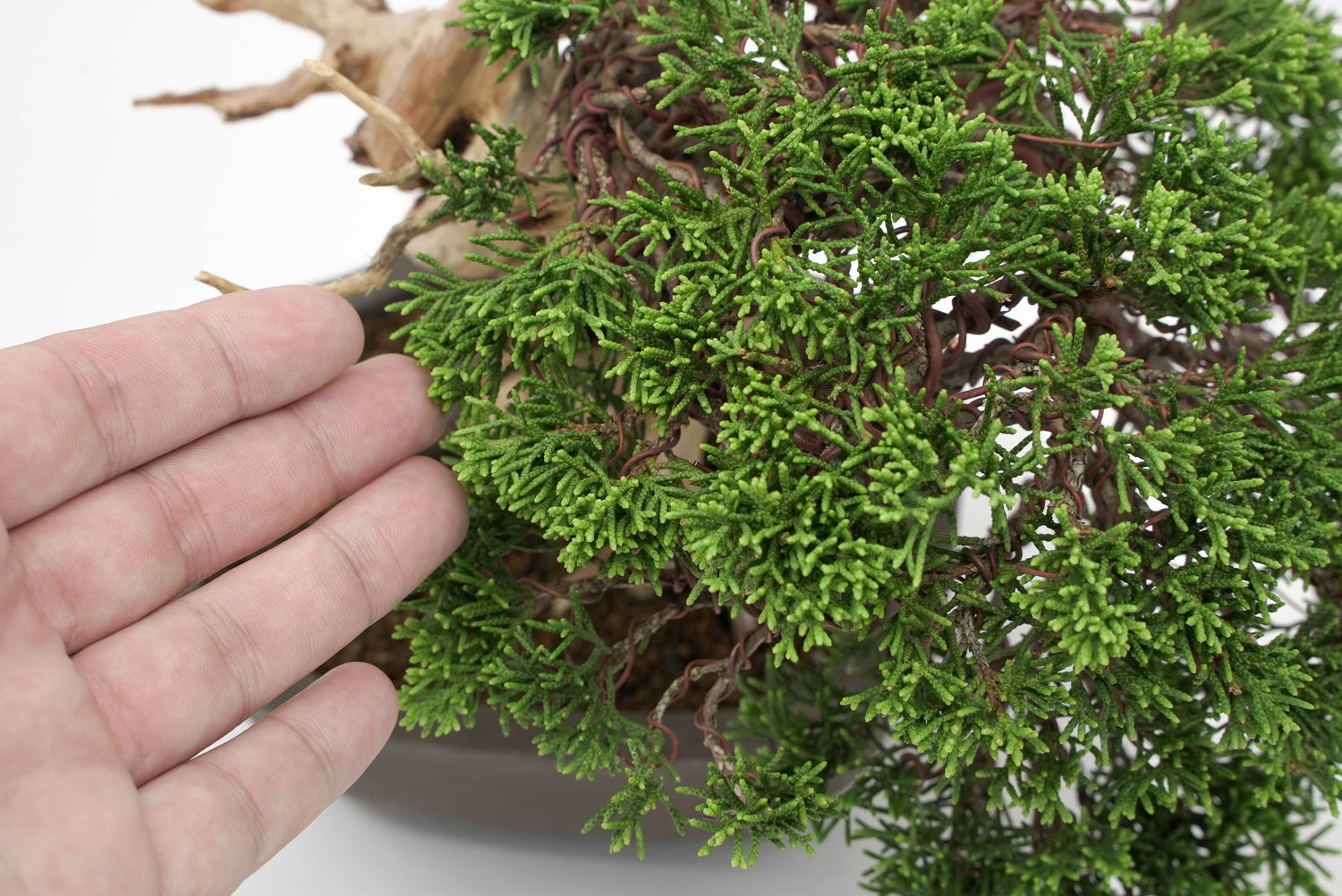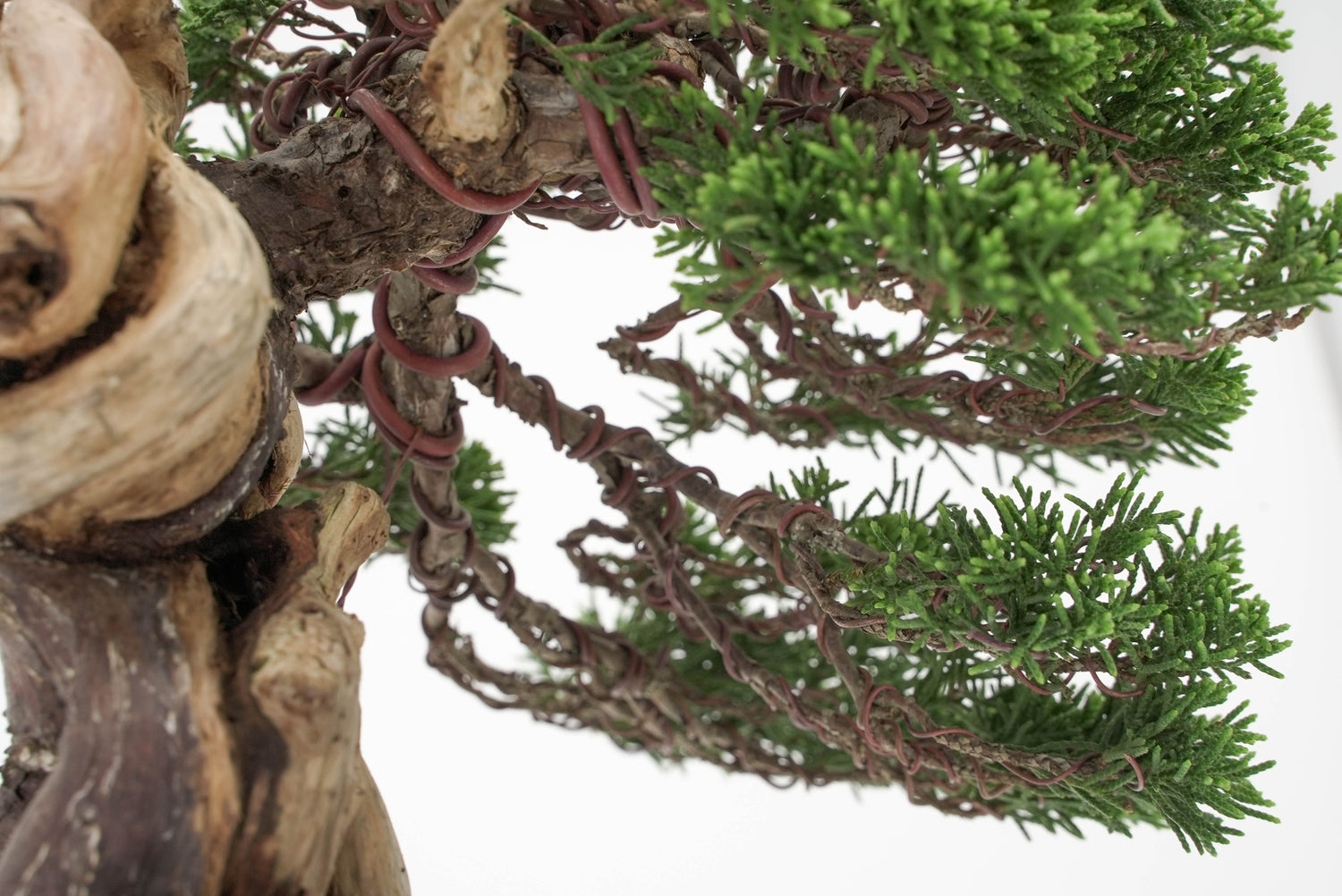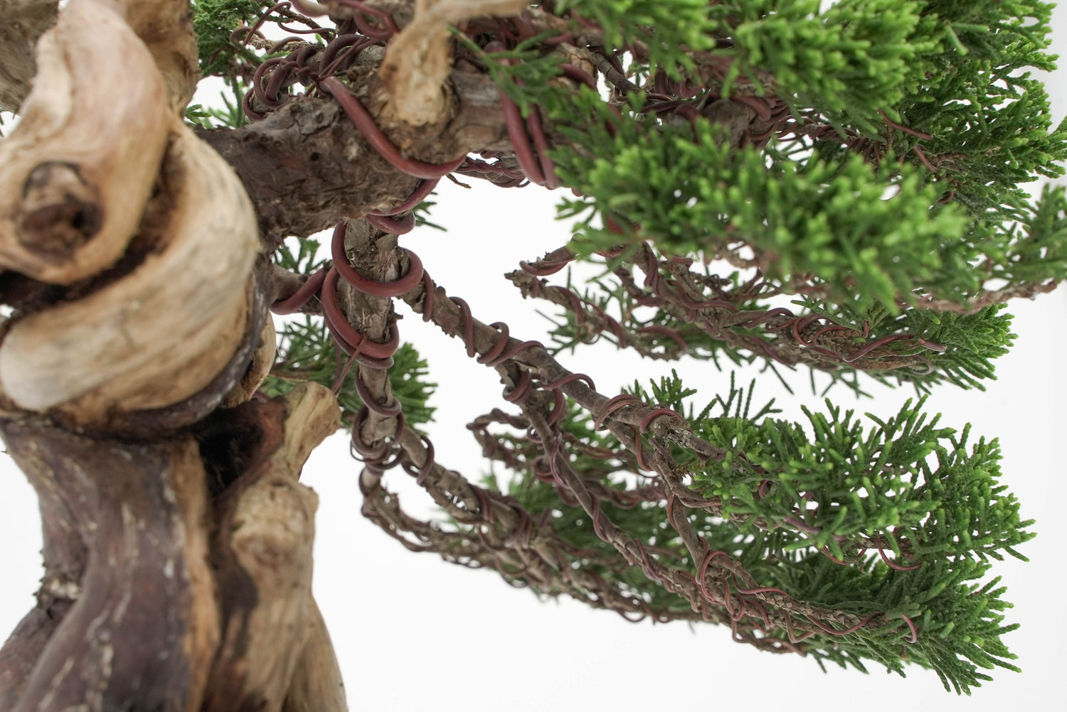 幹中間部で捻転し、舎利が効いた様は自然界の厳しさが表現され、大木感も感じられる逸品